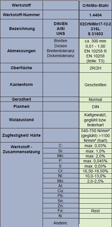 Rostfreier Präzisionsbandstahl 1.4404.