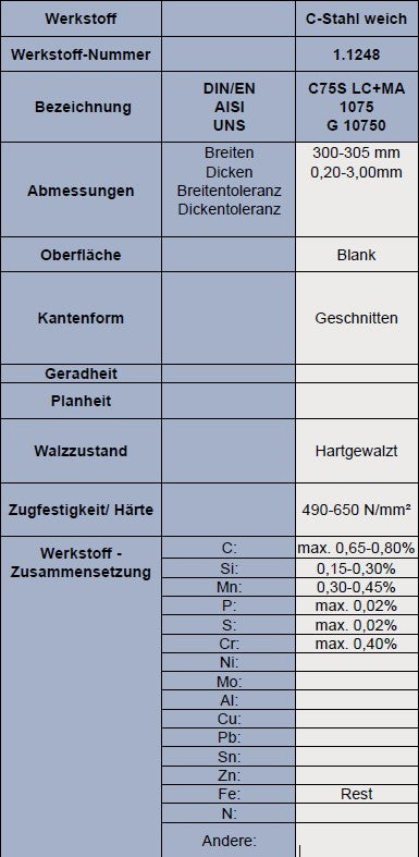 Härtbarer Federstahl, C-Stahl - 1.1248 // L: 1000mm - B: 300mm